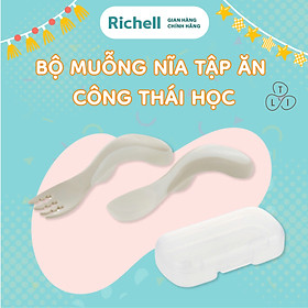 ✨Bộ muỗng nĩa cong RICHELL TLI cho bé tự xúc có hộp đựng | Baby