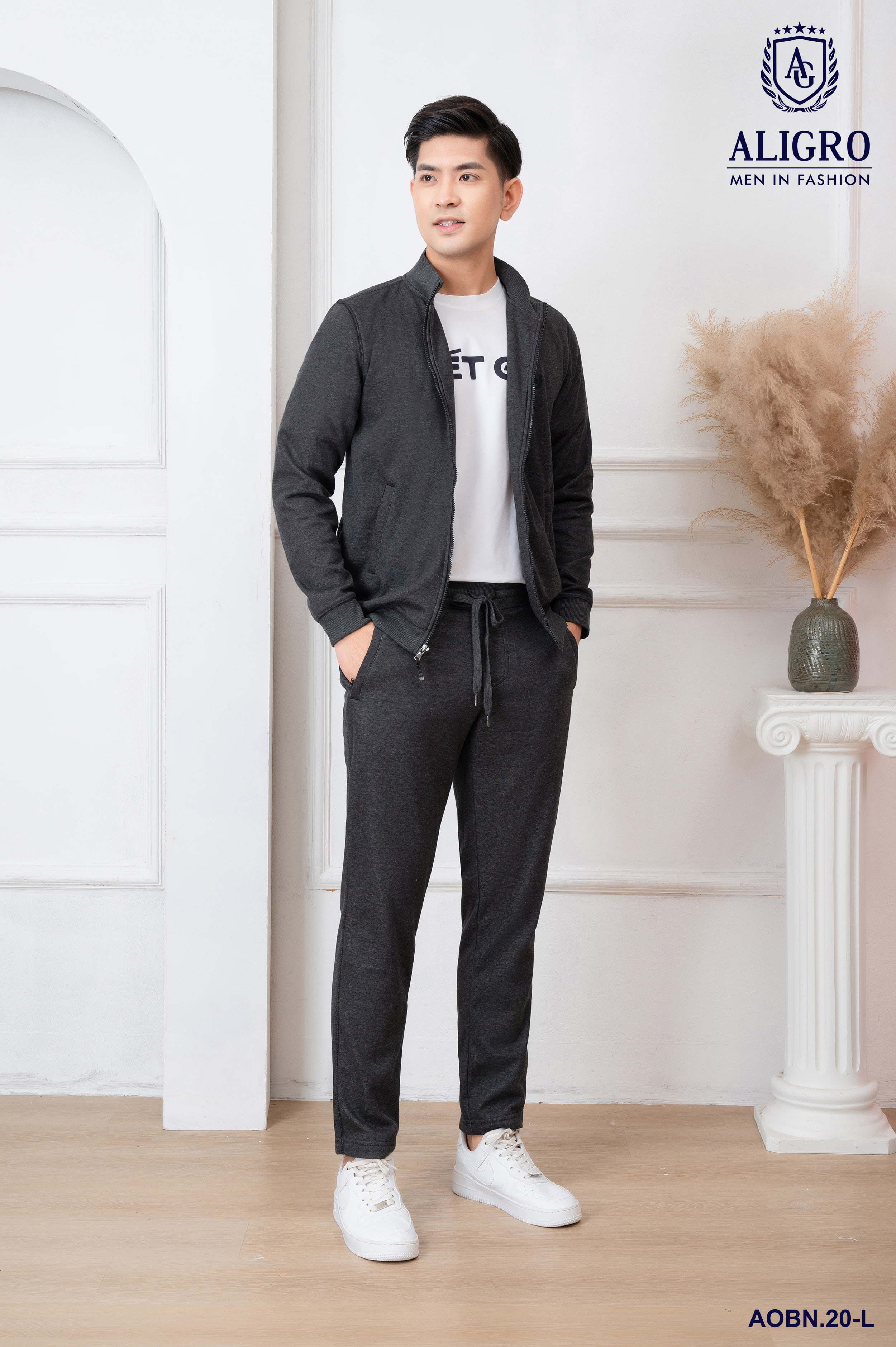 ✨Bộ nỉ kéo khóa ALIGRO màu ghi đậm BN.20