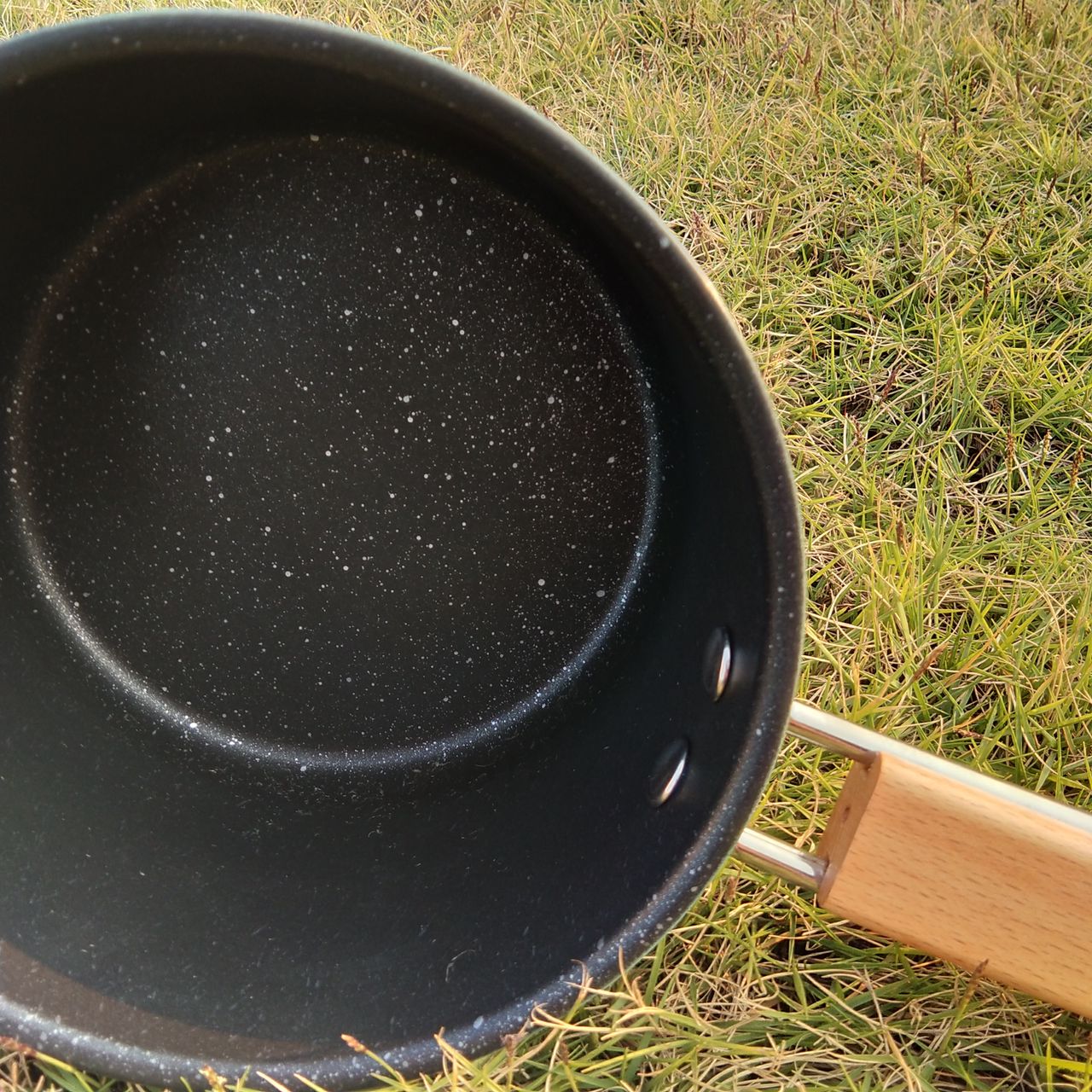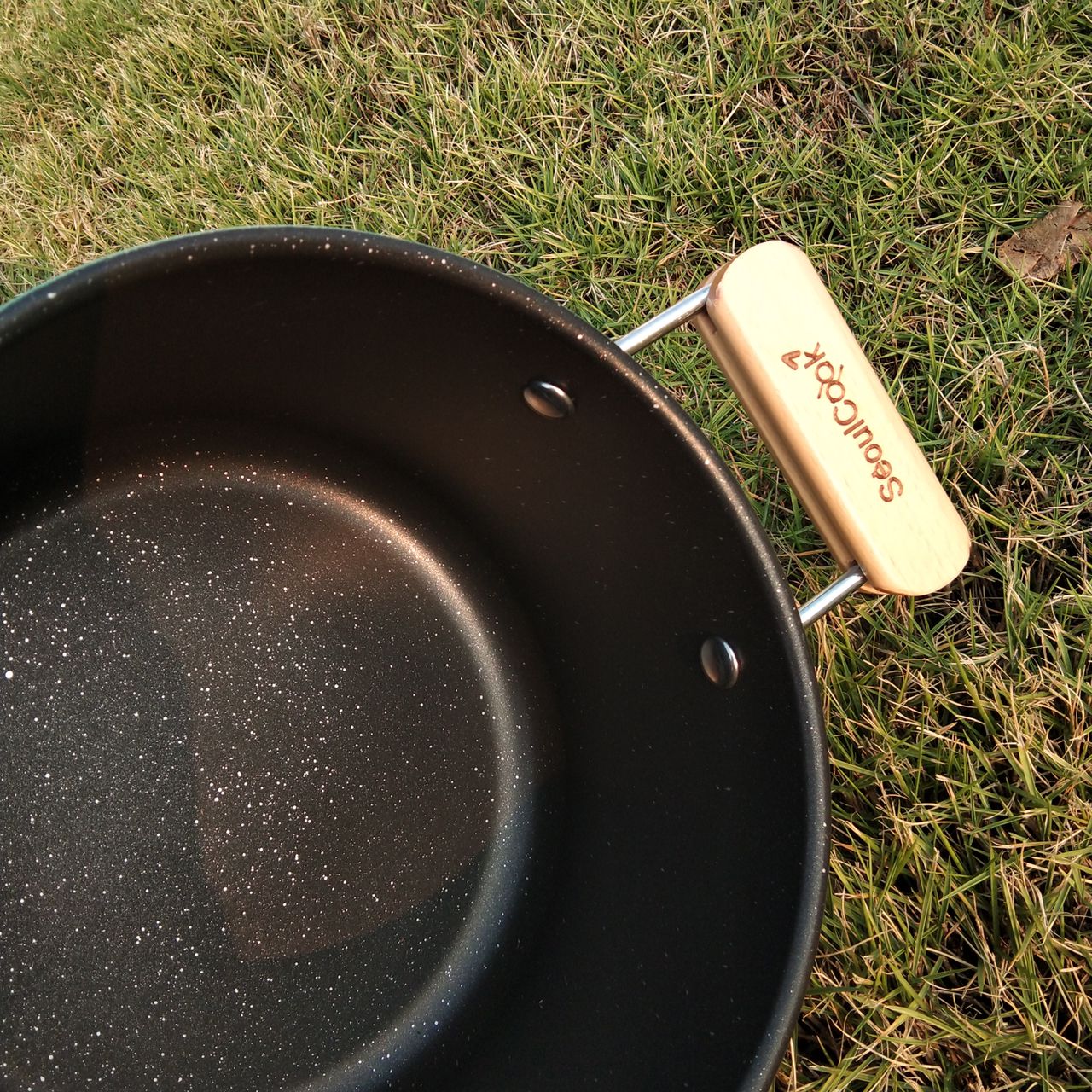 Tay cầm của sản phẩm được rèn riêng và bọc gỗ rồi được gắn với thân bằng đinh tán nên sẽ hạn chế nhiệt lượng truyền đến vị trí tay khi cầm, thiết kế riêng biệt giúp bạn thuận tiện cầm nắm, thao tác mà không lo bị bỏng tay.