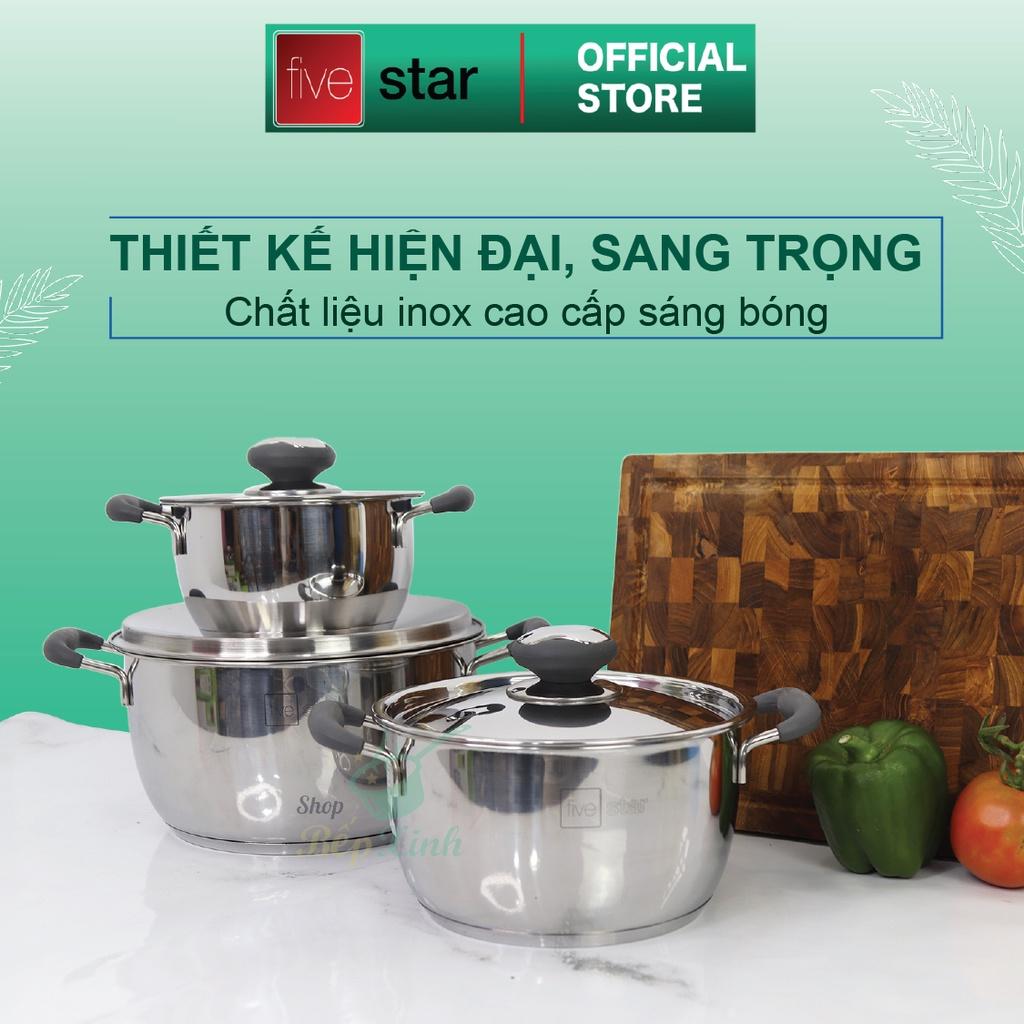 ✨Bộ nồi chảo 3 đáy inox 430 Thân Cool Fivestar Standard quai silicon chống nóng nắp inox bếp từ , tặng 2 vá canh