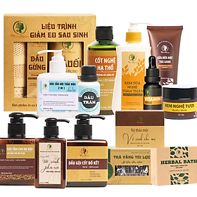 - Đối tượng sử dụng: Dành cho mẹ sau sinh thường và sinh mổ. Thông tin sản phẩm: Bộ sản phẩm bao gồm: 1 Dầu gội cốt bồ kết + Sữa rửa mặt + Serum vitamin C + Kem nghệ tươi + Sữa tắm cho mẹ + Cốt nghệ + Kem sữa nghệ toàn thân + Liệu trình eo + Xông toàn thân 6 túi + Xông cửa mình + Dung dịch vệ sinh + Trà vằng + Dầu tràm Xuất xứ: Việt Nam Trọng lượng (g) 5000 Hạn sử dụng: 2 năm