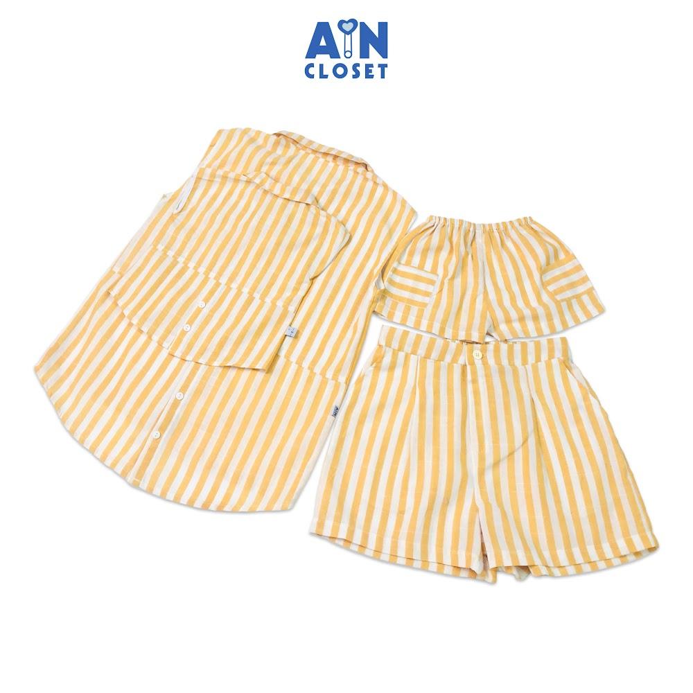 ✨Bộ quần áo ngắn cho mẹ họa tiết Kẻ vàng trắng cổ sơ mi linen cotton - AICDMEXU7K6V - AIN Closet