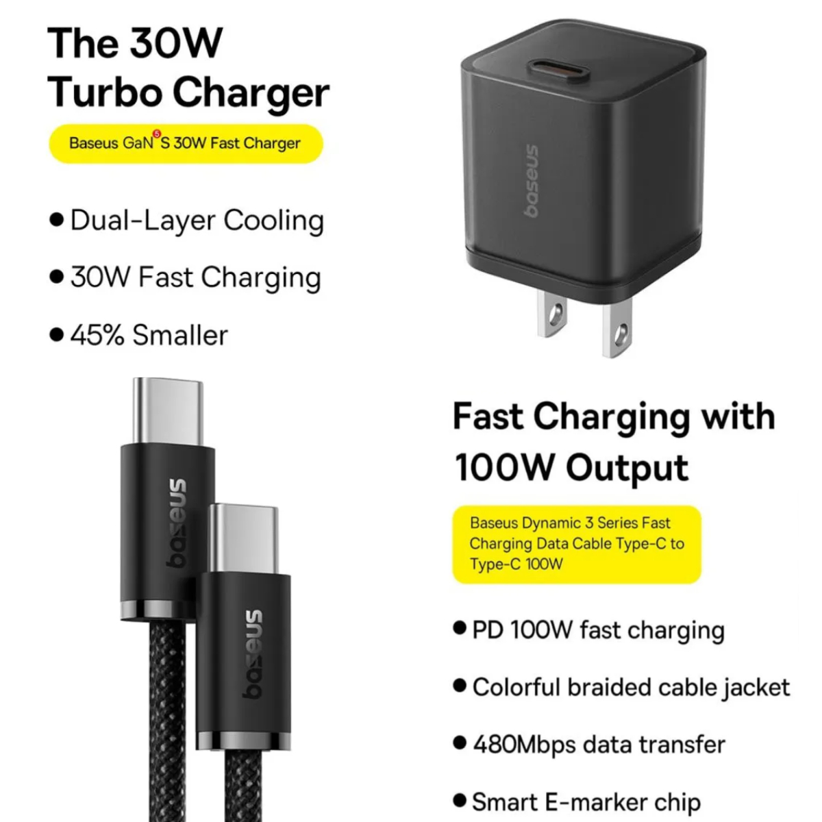 ✨Bộ Sạc Nhanh Baseus GaN5S 1C 30W (Kèm Cáp C to C 100W Dynamic 3 Series)- Hàng Chính Hãng