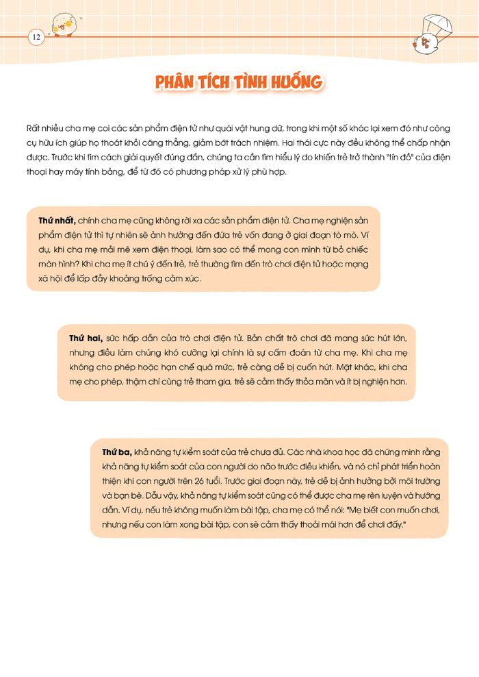 - Kết hợp lý thuyết và thực hành: Không chỉ giải thích lý do mà còn có ví dụ thực tế, mẫu câu cụ thể giúp cha mẹ sử dụng ngay.
