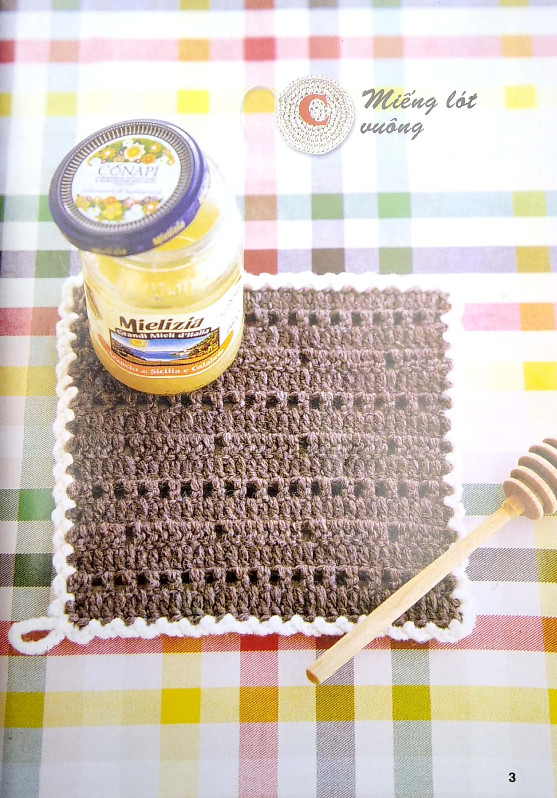 Kỹ thuật móc len sợi tấm lót, thảm, hoa trang trí, giày, nón, giỏ xách.