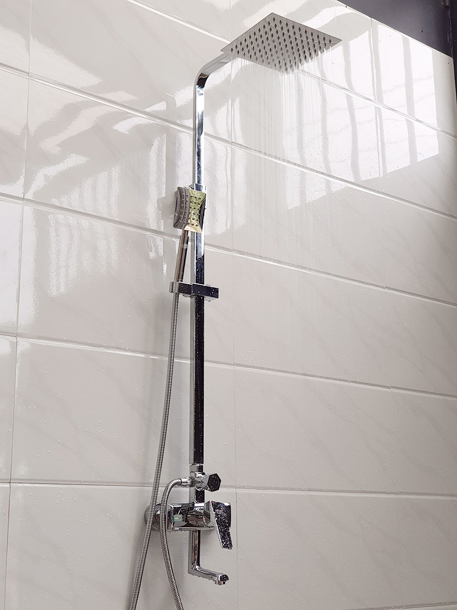 Đài sen và tay sen đi kèm được làm tự INOX SUS 304 an toàn cho sức khỏe người sử dụng. Mạ Chrome sáng bóng không hoen ố khi sử dụng