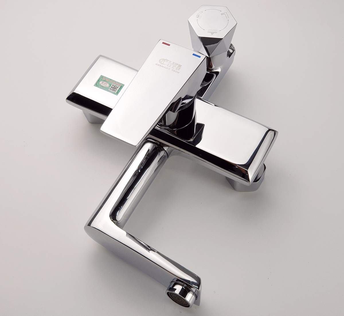 Thân vòi được thiết với hình vuông góc, mạnh mẽ. Tay mở nguồn nước và núm chuyển chế độ nằm mặt trước tiện dụng. Đặc điểm nổi trội của các sản phẩm Eurolife là nước mạ tinh xảo, sáng bóng không tì vết, mang lại sự hoàn hảo và sang trọng cho phòng tắm