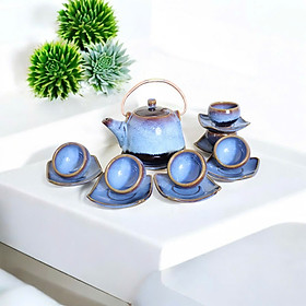 Bộ ấm chén kẻ men hoả biến gốm sứ Bát Tràng