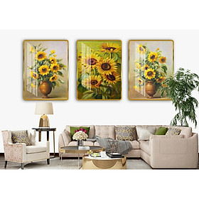 ✨Bộ tranh 3 Bức - Tranh treo tường phòng khách- Tranh Hoa 3D Hiện Đại H 38334/Gỗ MDF cao cấp phủ kim sa/ Chống ẩm mốc, mối mọt/Bo viền góc tròn