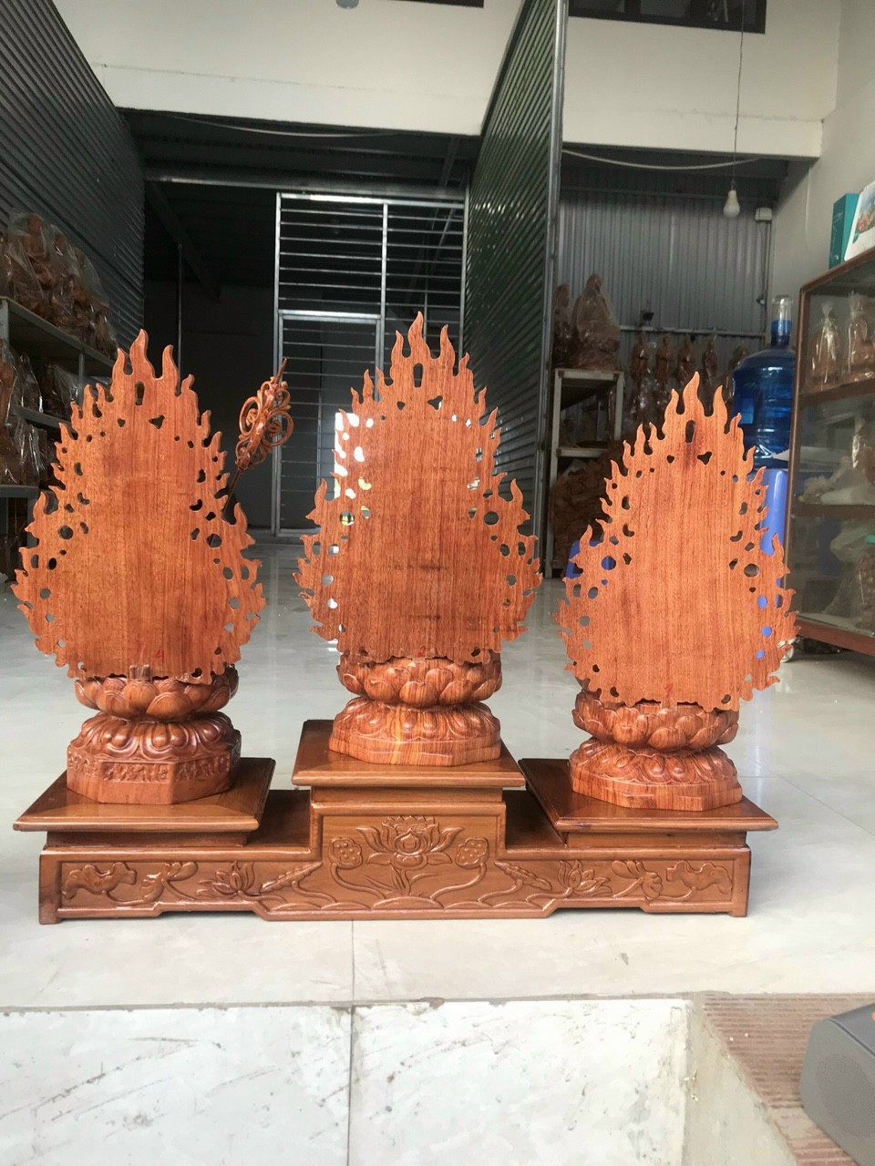 Bộ tượng phật Ta Bà Tam Thánh, Sa Bà Tam Thánh cao từ 30cm đến 50cm chất liệu gỗ hương