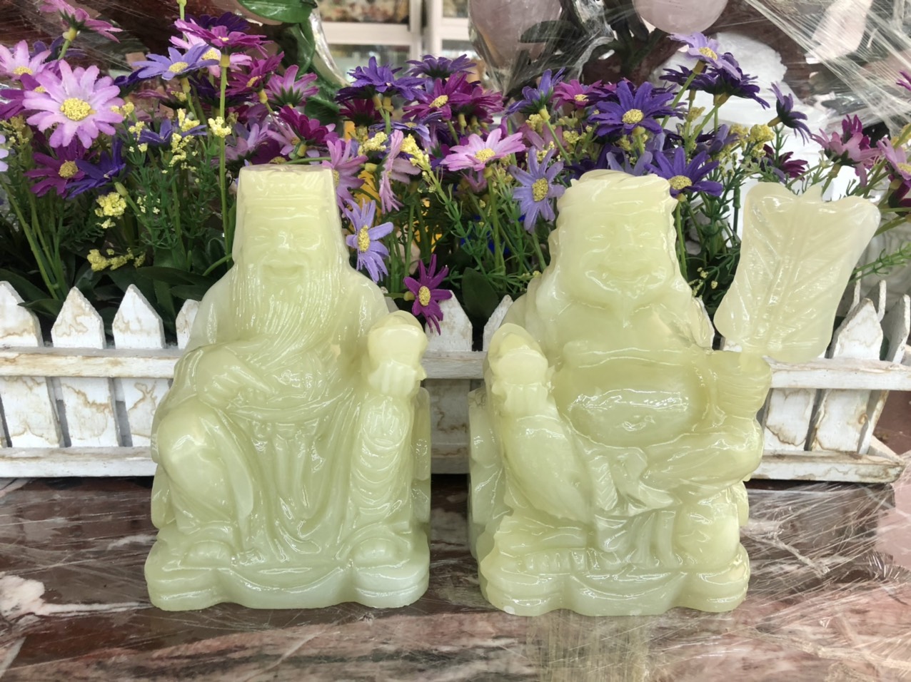 ✨Bộ tượng thờ hai ông Tài Địa Thần Tài Thổ Địa đá ngọc Onyx - Cao 15 cm