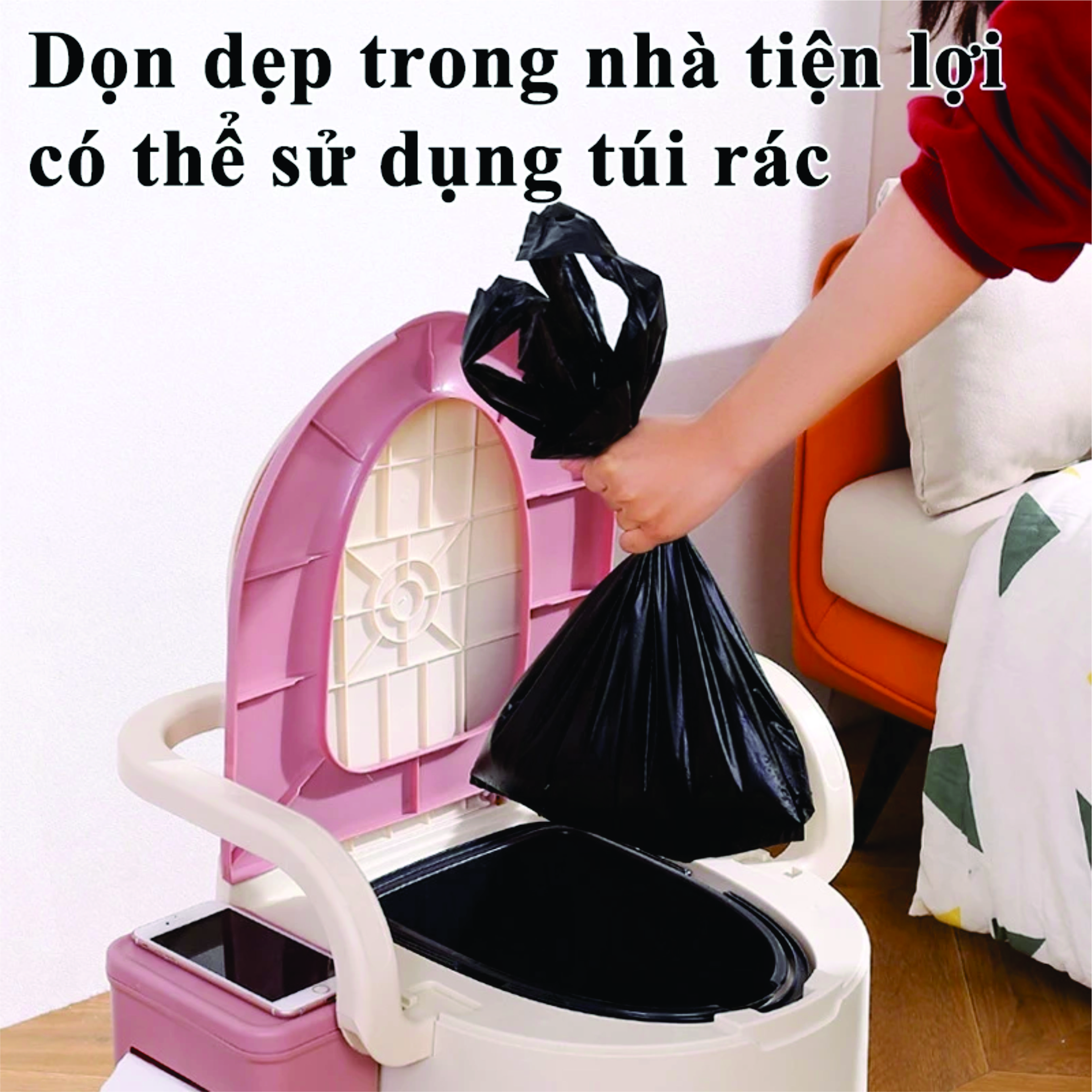 Chất liệu: đệm PU, PP Bô vệ sinh có thể di chuyển mọi nơi