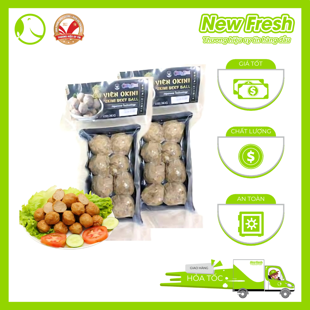 - Hạn sử dụng: 2 Năm BÒ VIÊN OKINI Bò viên Okini gây ấn tượng với biết bao khách hàng nhờ hương vị thơm ngon, đa dạng trọng cách chế biến. Bạn có thể sử dụng bò viên cho nhiều món ăn gia đình hàng ngày hoặc dùng với các món bún, phở truyền thống. Đặc biệt, New Fresh luôn mang tới khách hàng sản phẩm chất lượng cao với mức giá phải chăng nhất trên thị trường. ĐẶC ĐIỂM CỦA BÒ VIÊN OKINI TẠI NEW FRESH Bò viên Okini được OkiniFood cho ra mắt, với quy trình được làm từ thịt bò xay nhuyễn kết hợp với bột mì, trứng, hành tây, tỏi, rau mùi, muối và tiêu.,... Sản phẩm được sản xuất và đóng gói trực tiếp tại nhà máy với quy trình công nghệ và vệ sinh an toàn thực phẩm đảm bảo chất lượng. Bò viên Okini là một món ăn đa dạng và ngon miệng, có thể được phục vụ như một món khai vị hoặc như một món chính. Ăn miếng đầu tiên sẽ cảm nhân được vị giòn, ngon, thơm độc đáo và không quên được. LÝ DO NÊN CHỌN SẢN PHẨM TẠI NEW FRESH