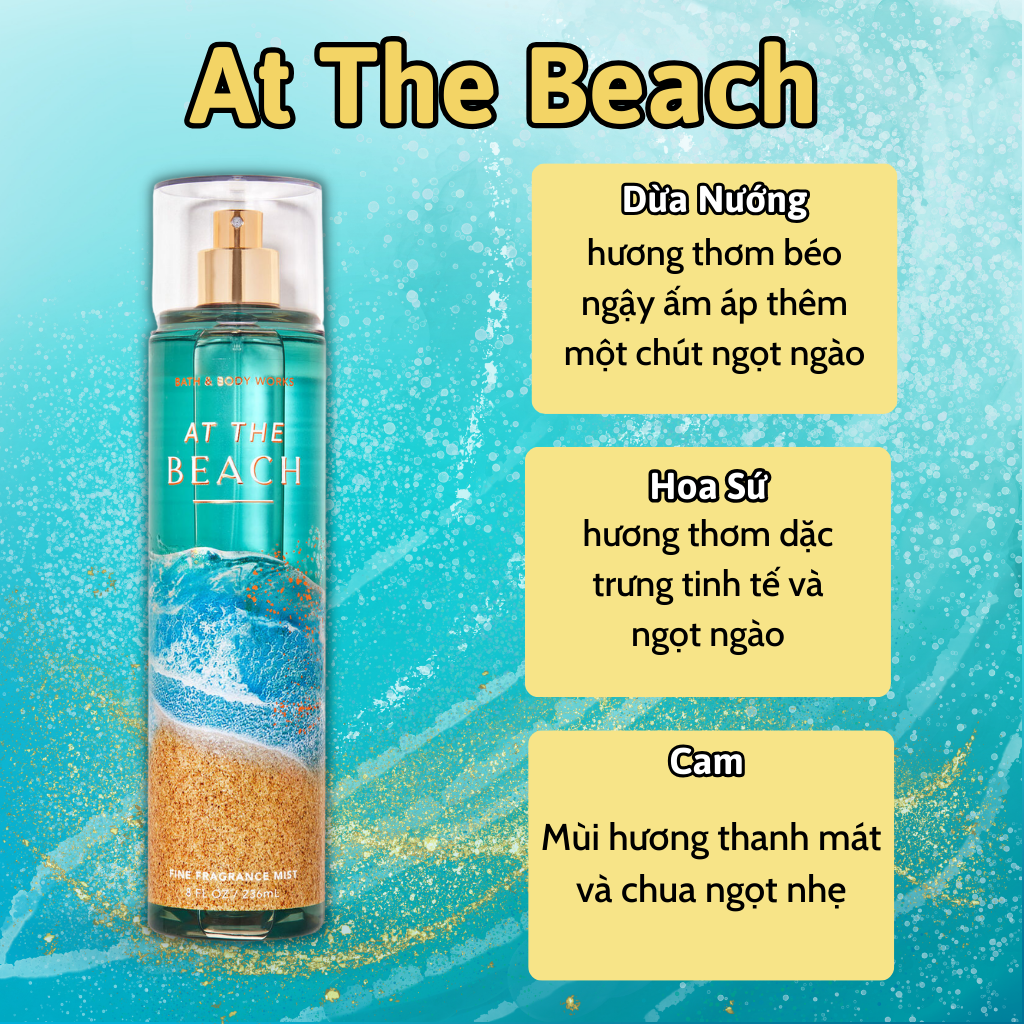 Body Mist Bath And Body Works Nam Nữ Chính Hãng At The Beach, Xịt Thơm Body Toàn Thân Hương Nước Hoa 236ml - Body mist Bath And Body Works là một trong những loại xịt