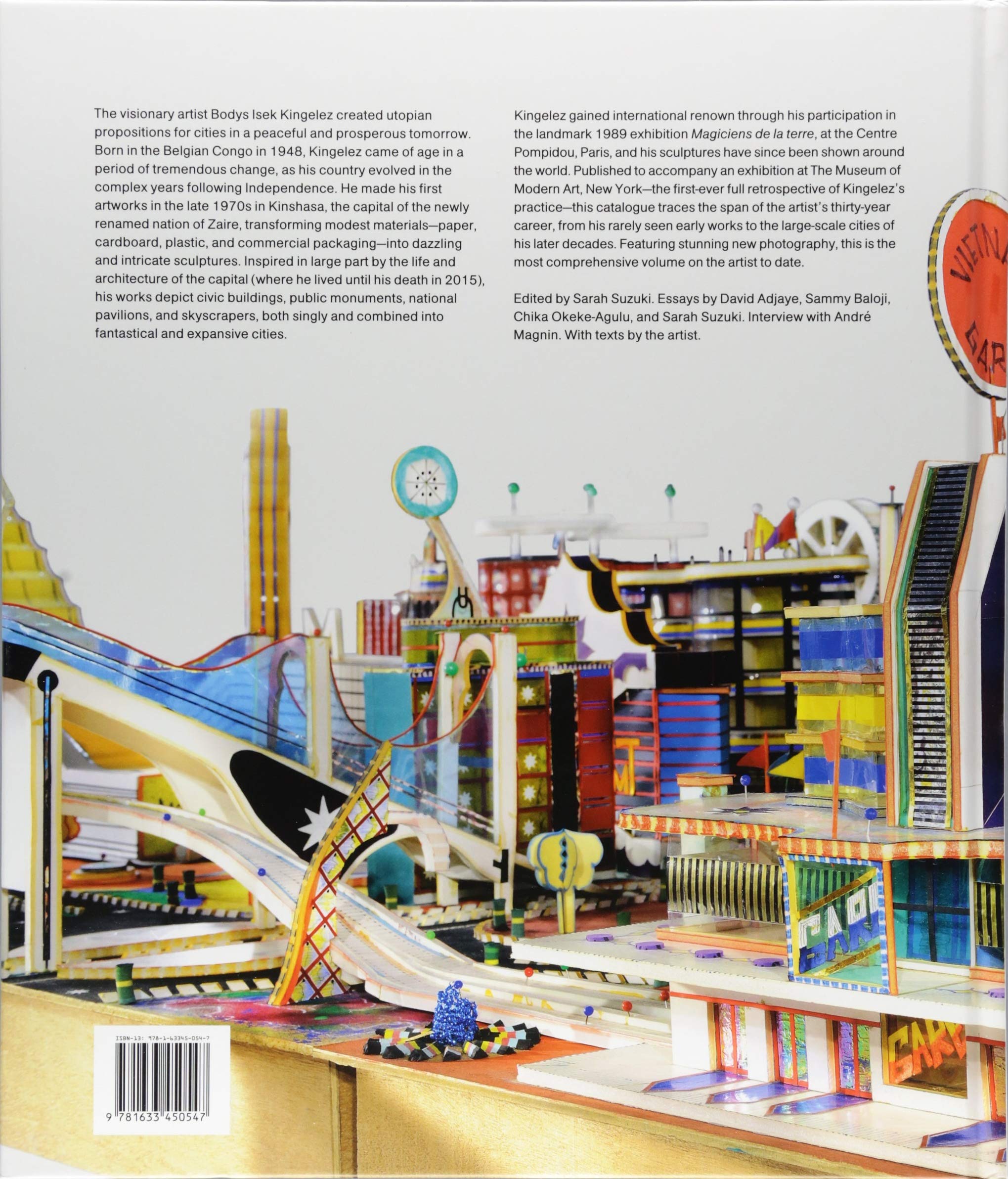 Các tác phẩm điêu khắc của Bodys Isek Kingelez (1948-2015) là những đề xuất kiến trúc tưởng tượng và những cấu trúc không thể tin được cho một cảnh quan đô thị cổ tích. Bao gồm giấy, bao bì thương mại và những thứ của cuộc sống hàng ngày, "những chiếc áo khoác cực chất" của ông đã biến những vật liệu này thành những tầm nhìn tuyệt vời bao trùm các tòa nhà dân sự, tượng đài công cộng và gian hàng tư nhân. Với những bức ảnh mới tuyệt đẹp về tác phẩm của anh ấy, đây là bộ sách toàn diện nhất về nghệ sĩ cho đến nay.