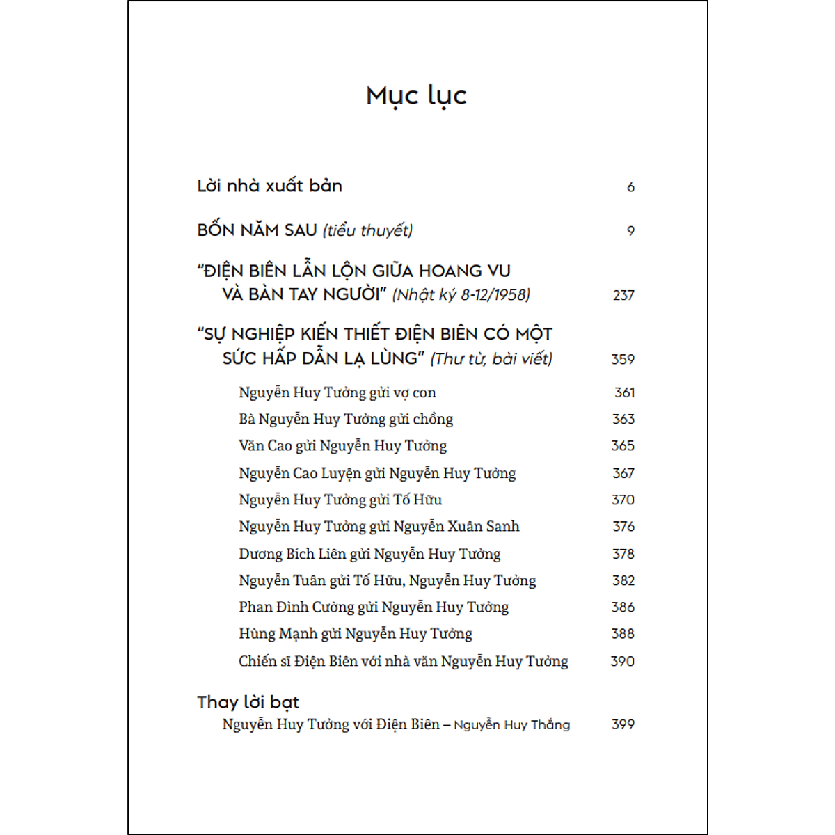 Nội dung cuốn sách cơ bản được tổ chức thành hai phần: tiểu thuyết Bốn năm sau kể về công cuộc tái thiết Điện Biên của các chiến sĩ sư đoàn 316, bốn năm sau ngày giải phóng (tác phẩm đạt giải thưởng Hồ Chí Minh về văn học-nghệ thuật) và những trang nhật ký của tác giả, cùng thư từ gửi về cho gia đình, bạn bè văn nghệ trong chuyến đi thực tế dài hơn bốn tháng (8-12/1958) ở Điện Biên.