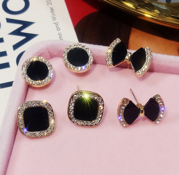 Mua tại TiktokBông tai nữ đen đính đá nhiều lựa chọn hình nơ, sao, tròn