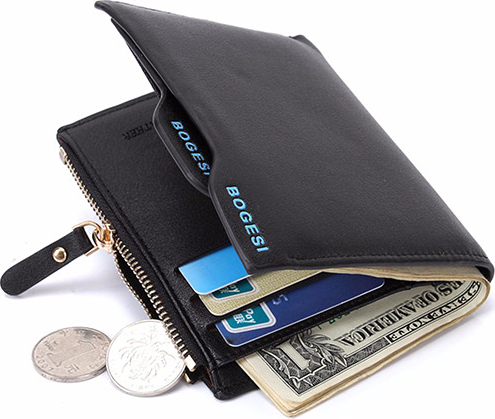Bóp Ví Nam Bogesi cao cấp V0031 da PU cao cấp Đen Xám