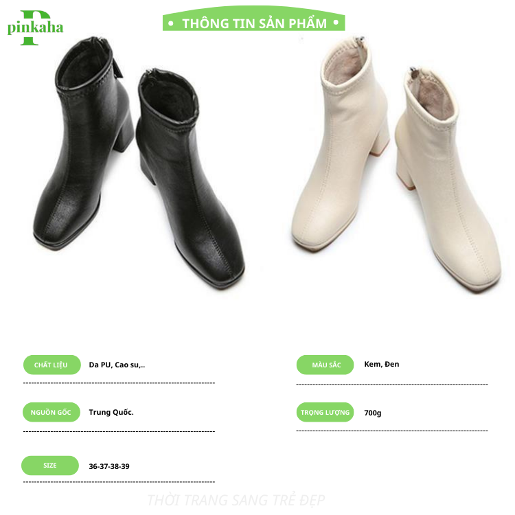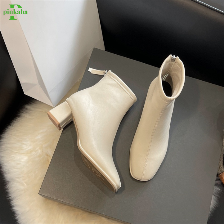 Bốt cao gót da mềm đế vuông khoá kéo sau thời trang mới chuẩn phom xinh xắn #bốt #bốt_nữ #pinkaha