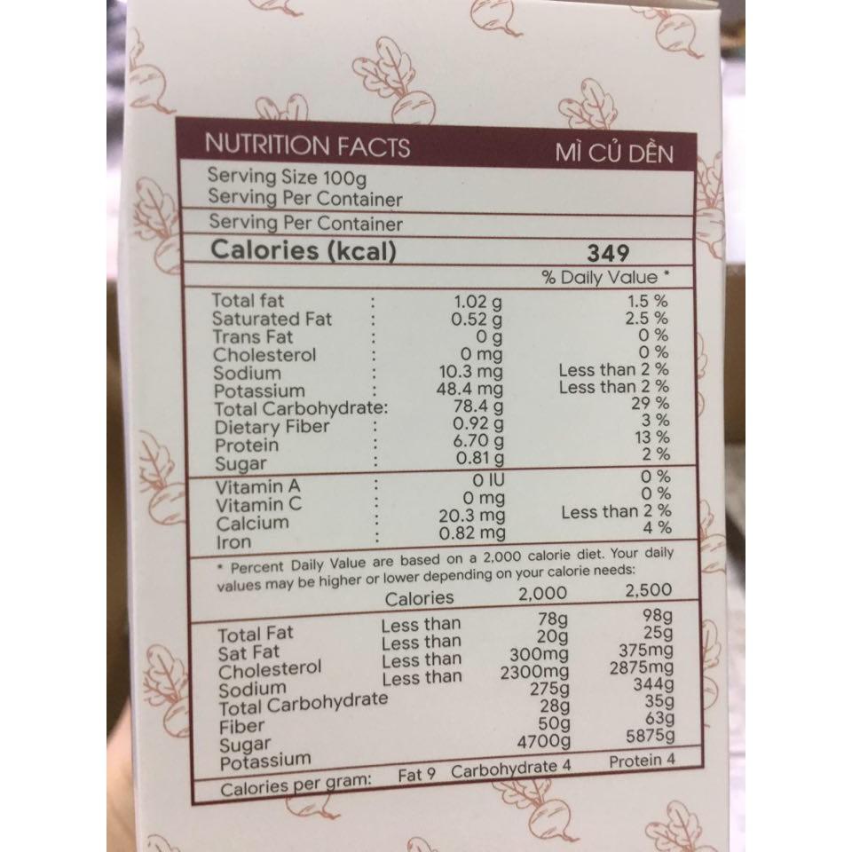 - Không chống mốc Mì củ dền được làm thủ công với công nghệ sấy lạnh, khép kín nên sợi mì dai đều và đảm bảo ATVSTP.