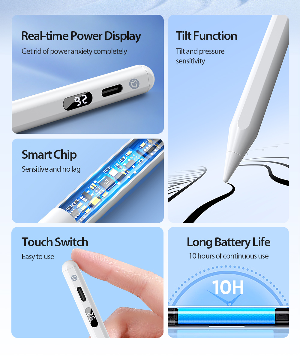 Được thiết kế cho các mẫu iPad 2018-2024 Bút cảm ứng cho iPad hỗ trợ cho các mẫu iPad series 2018-2024: iPad thế hệ thứ 6/7/8/9, iPad Air thế hệ thứ 3/4/5, iPad Pro 11/12,9