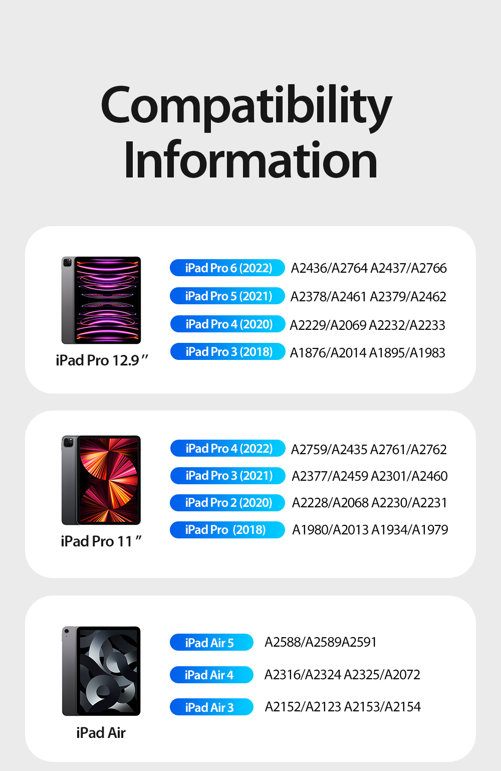 - Khả năng tương thích: tương thích với iPad được phát hành vào năm 2018 trở lên và iOS 12.2 trở lên, iPad 10/9/8/7/6, iPad Air 5/4/3, iPad mini 6/5 và iPad Pro 12.9/11 inch