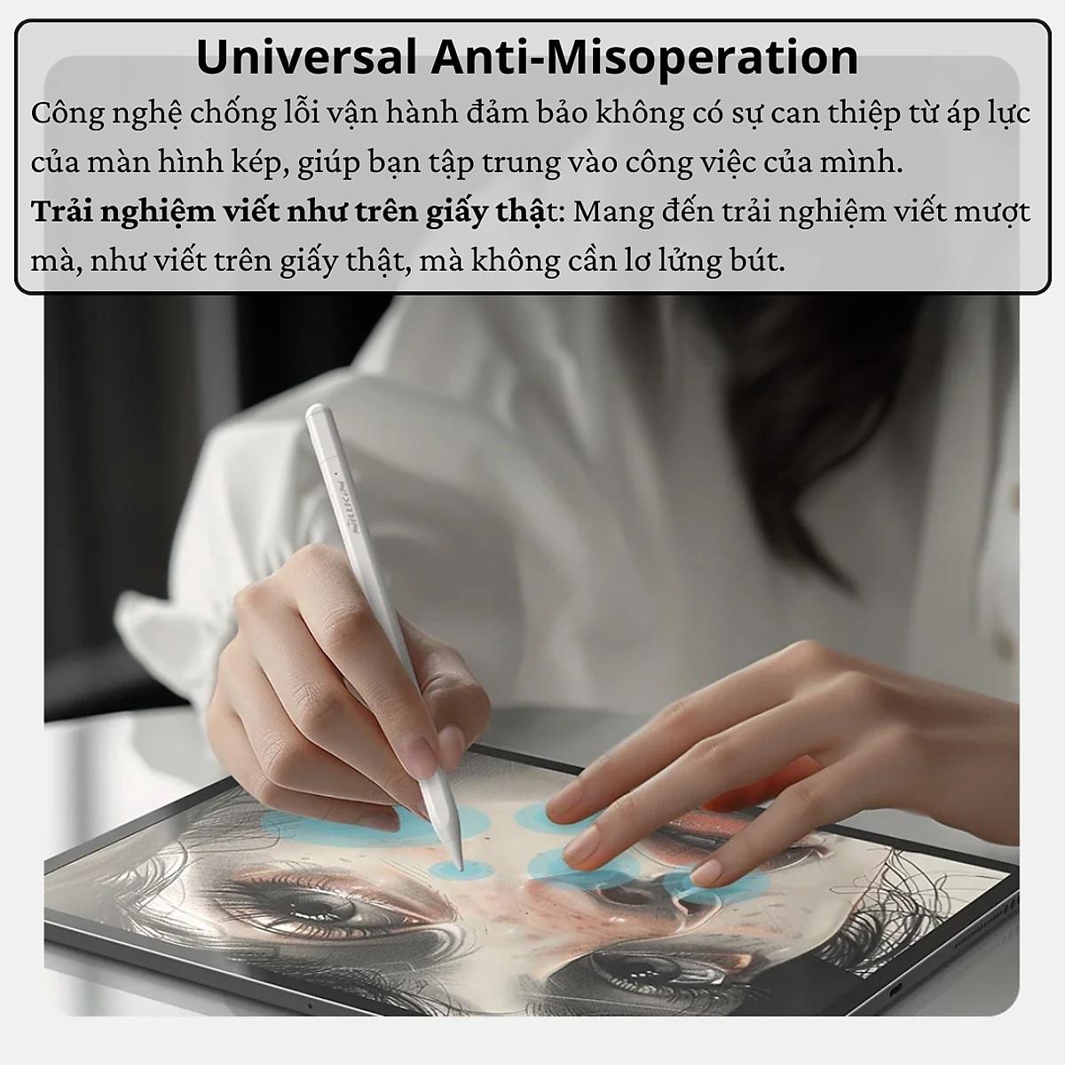 Bút cảm ứng WIWU Stylus A01 cho iPad Pro, Air, Mini đời 2018 trở lên Công nghệ chống tì tay toàn màn hình WIWU Stylus A01 hỗ trợ tính năng chống tì tay, cho phép