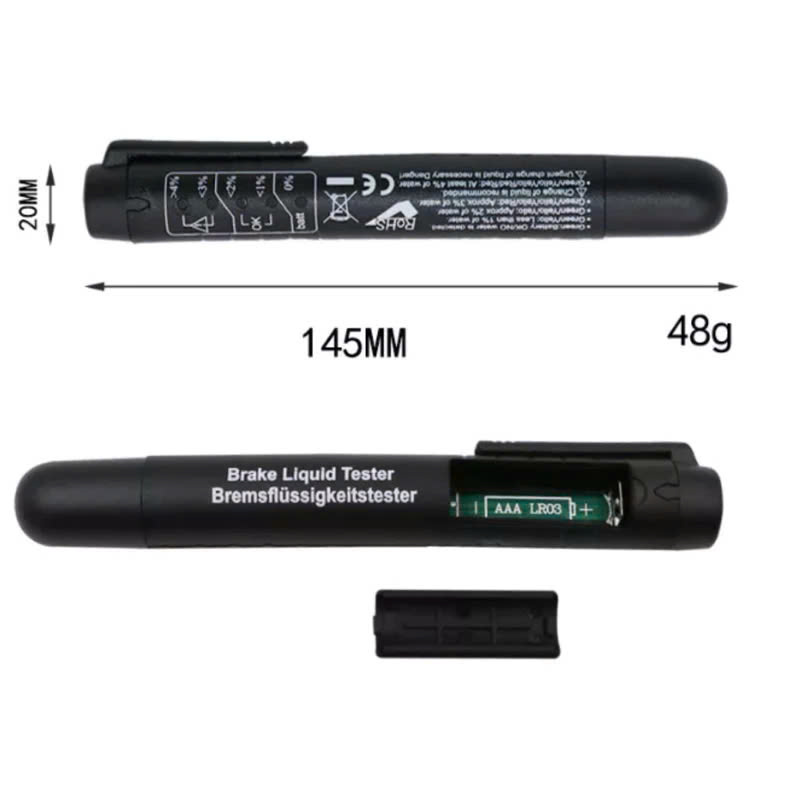 Đèn Báo Chỉ Số LED Tiện Ích: Với đèn báo chỉ số LED thông minh, bút thử dầu này cung cấp thông tin chính xác và dễ hiểu về mức dầu phanh. Mỗi chỉ số sáng lên sẽ là một tín hiệu cho biết tình trạng cụ thể, giúp bạn nhanh chóng nhận biết và xử lý vấn đề.