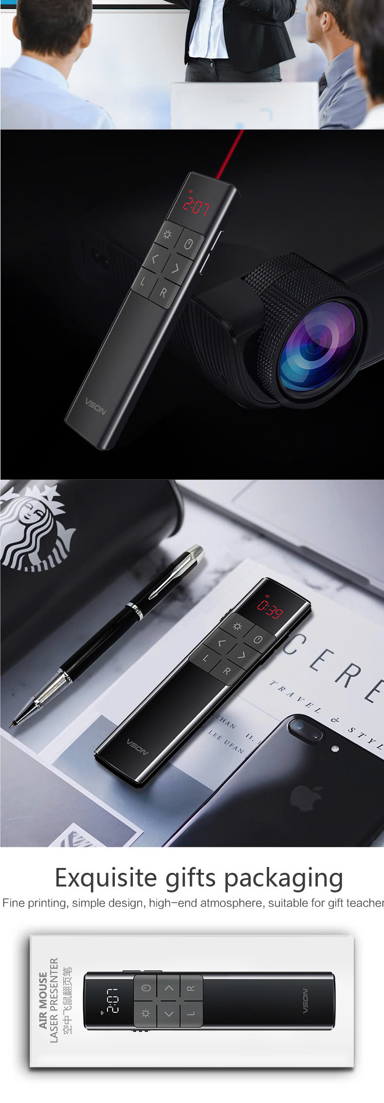 Bút Trình Chiếu Kỹ Thuật Số VSON N39M – Tích Hợp Laser, Bluetooth & USB, tia kỹ thuật số có thể sử dụng được màn chiếu, tivi, bảng tương tác Mô tả sản phẩm: -