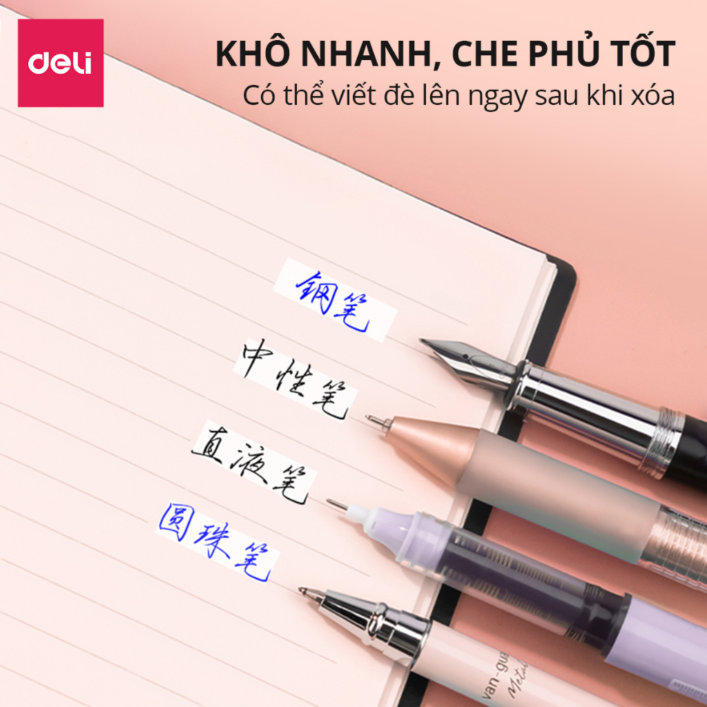 ✨Bút Xóa Băng 12M Không Tiếng Ồn Deli - Che Phủ Tốt Khô Nhanh, Viết Đè Lên Ngay Sau Khi Xóa - Băng kéo học sinh văn phòng