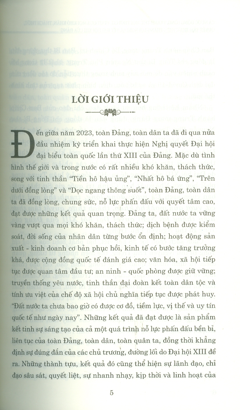 Cuốn sách "Cả nước đồng lòng, tranh thủ mọi thời cơ, vượt qua mọi khó khăn, thách thức, quyết tâm thực hiện thắng lợi Nghị quyết Đại hội XIII của Đảng" chọn lọc các bài