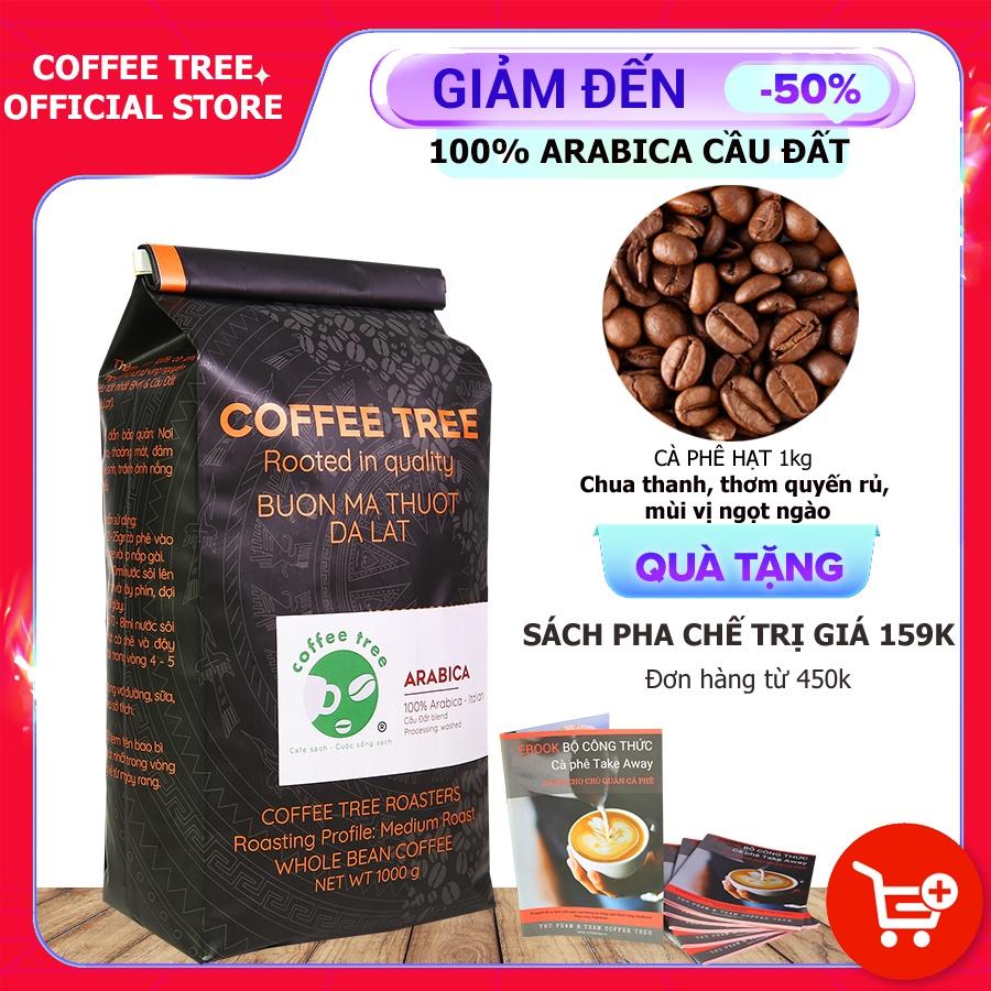 ✨Cà Phê Hạt Arabica Cầu Đất Nguyên Chất 100% - CoffeeTree - 1Kg - Hương Thơm Mạnh, Vị Đắng Nhẹ, Chua Thanh, Hậu Vị Ngọt