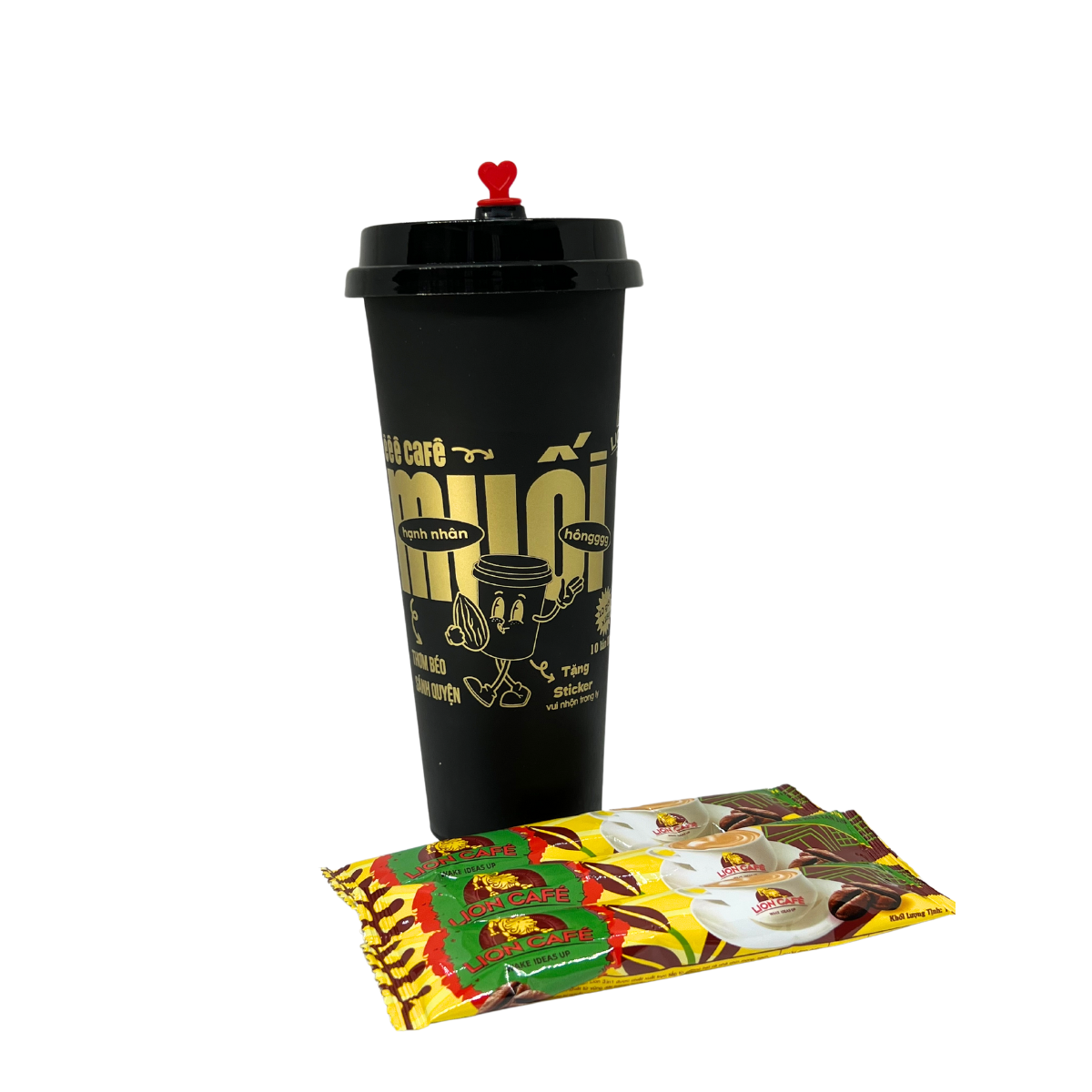 "Cà Phê Muối Hạnh Nhân - Sự Hòa Quyện Độc Đáo Của Hương Vị" dạng ly lần đầu tiên xuất hiện tại Việt Nam - 1 ly nhựa cứng nắp tim gồm 10 gói cà