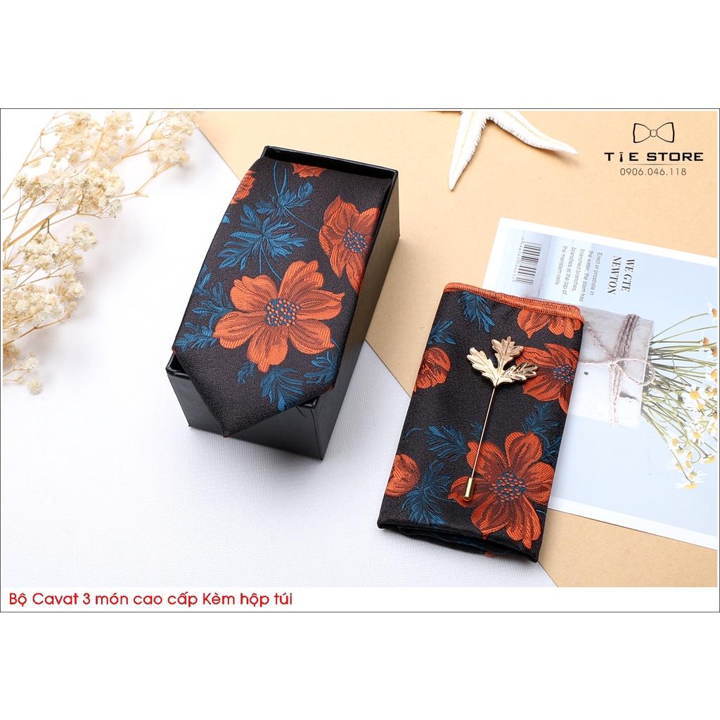 ✨Ca Vat bộ 3 món kèm hộp túi xách cao cấp, quà tặng chú rể, Cavat Hoa
