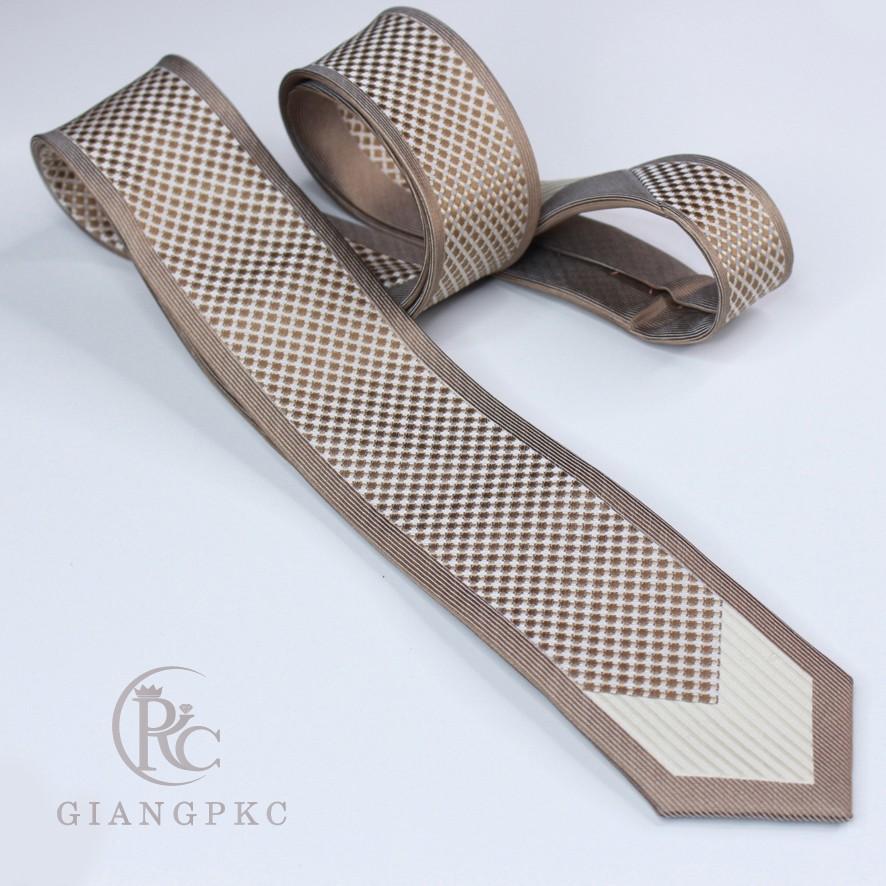 ✨Cà vạt nam bản 6cm chú rể Giangpck q62004 nâu nhọn trắng