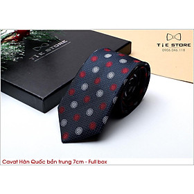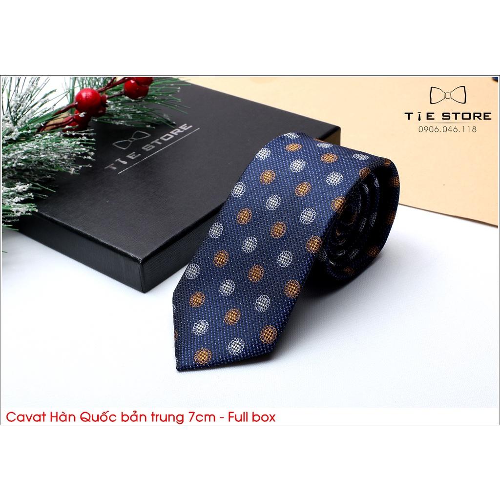 ✨Cà Vạt Nam Bản Trung 7Cm xanh họa tiết tròn - Cavat Hàn Quốc Cao Cấp Full box