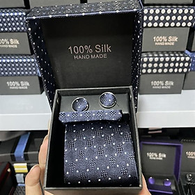✨Cà vạt nam màu xanh đen chấm nhỏ kèm hộp bản nhỏ 6cm dành cho nam thanh niên set đầy đủ mẫu t11-2023 Giangpkc 011-87