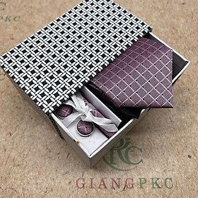 Cavat nam bản 8cm lót silk cao cấp nguyên hộp kèm khăn và khuy măng sét Giangpkc Qtp Sản phẩm cao cấp nguyên hộp quà tặng bản 8cm thích hợp cho trung niên - công