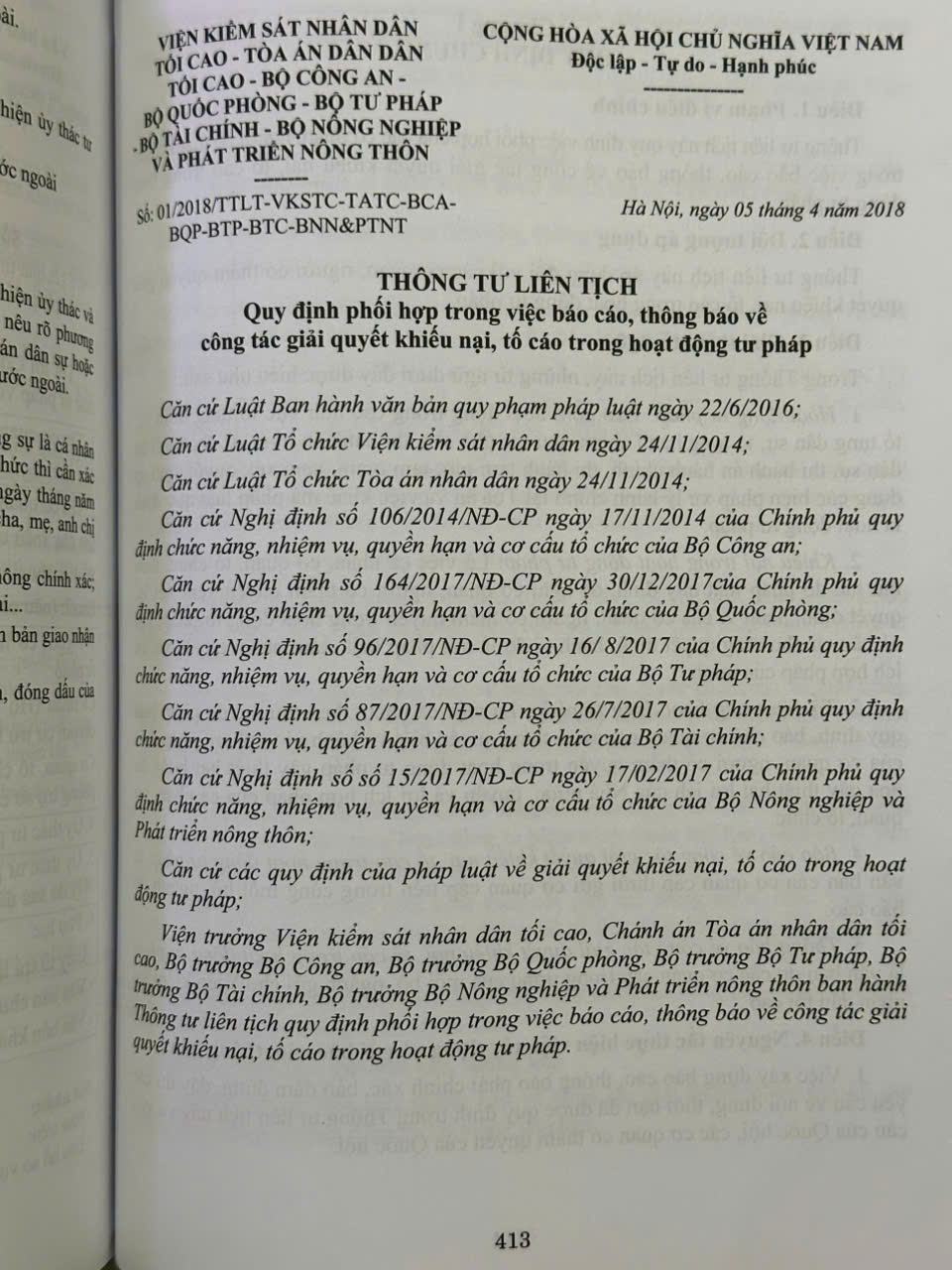 Phần thứ hai: Các Thông tư liên tịch của Tòa án nhân dân tối cao – Viện Kiểm sát nhân dân tối cao – Bộ Tư pháp – Bộ Công an – Bộ Quốc phòng về tố tụng hình sự