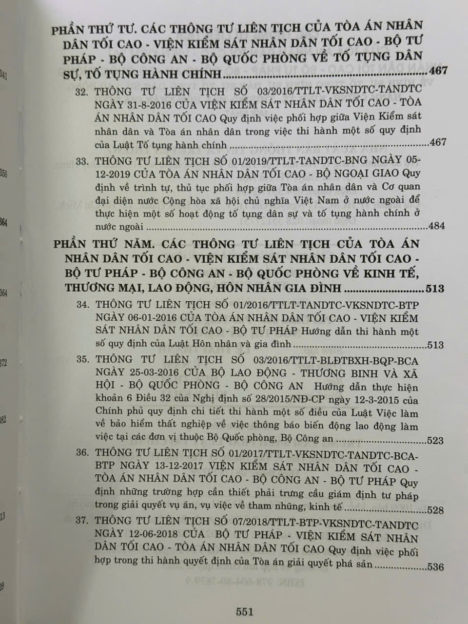 Phần thứ năm: Các Thông tư liên tịch của Tòa án nhân dân tối cao – Viện Kiểm sát nhân dân tối cao – Bộ Tư pháp – Bộ Công an – Bộ Quốc phòng về kinh tế, thương mại, lao động, hôn nhân gia đình