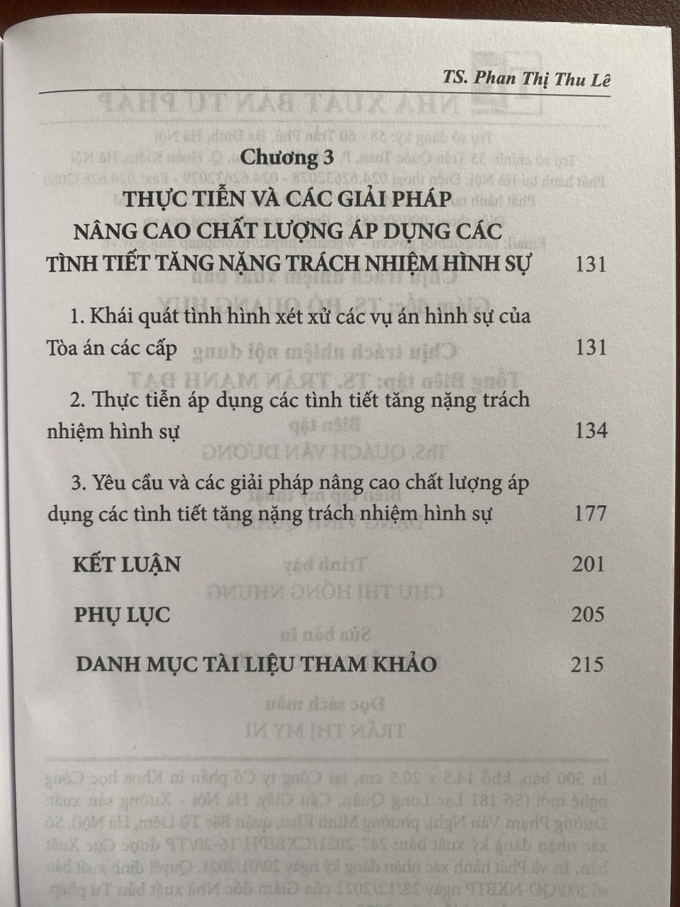 Giới thiệu cuốn sách ; Các tình tiết tăng nặng trách nhiệm hình sự trong Luật hình sự Việt Nam (Sách chuyên khảo) Tác giả: TS. Phan Thị Thu Lê Năm xuất bản: 2022 Số