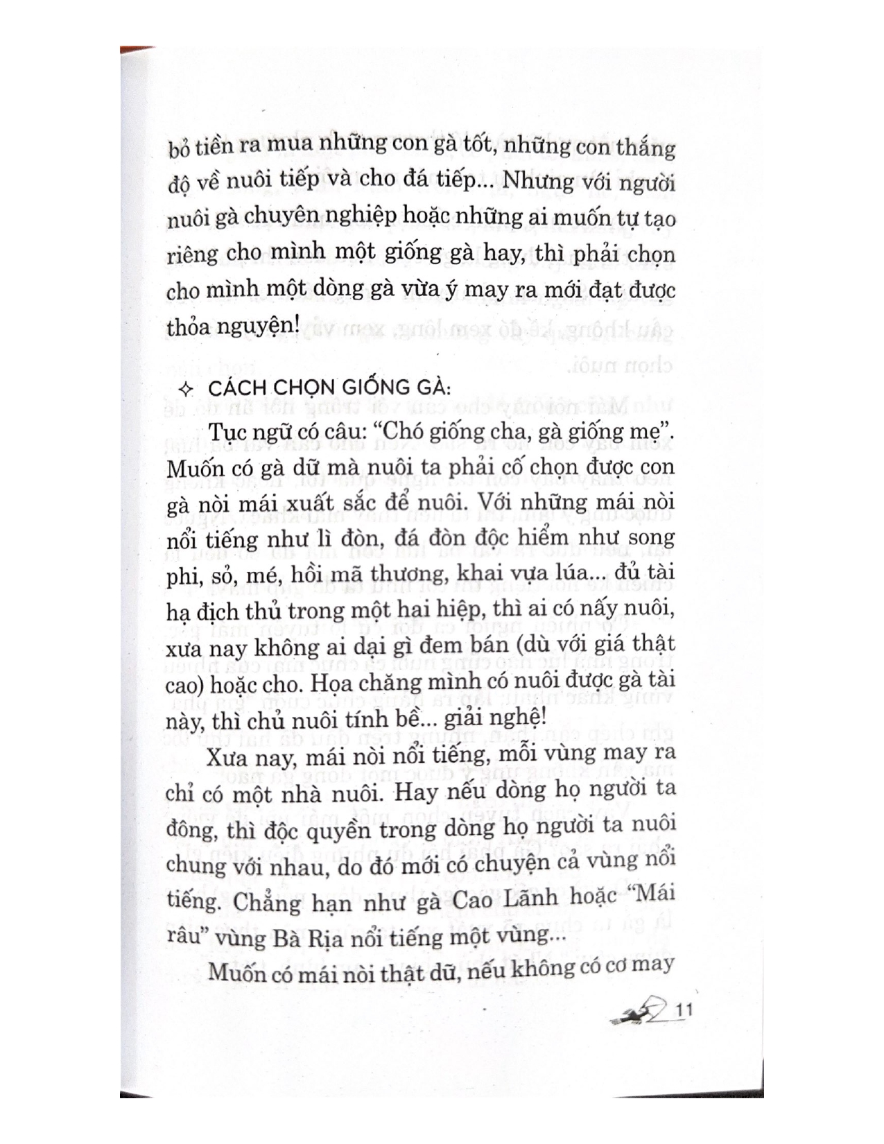 - Giới thiệu Cách Chọn Gà Đá Xưa nay, trong thú chơi gà nòi, bất cứ ai, dù không có máu ăn thua, không có tính chơi trội, cũng mong muốn tự mình chọn lựa những con chiến kê có thành tích vang dội tại chốn đấu trường, như vậy mới bằng lòng mãn ý. Hơn thế nữa, nhiều người còn muốn tự “đúc” cho mình dòng gà thật hay, thật xuất sắc với những đòn độc, thế hiểm để nuôi mãi suốt đời, và truyền giống lại cho con cháu đời sau. Đó là ý muốn tạo được mái gốc, mái tuyển cho riêng mình. Tự tạo một mái gốc vừa ý, việc này tất nhiên quá khó, đòi hỏi sự đam mê cao độ và sự quyết tâm thực hiện của mình, may ra mới được. Ngoại trừ có một cơ may nào thì không nói. Vì rằng, nếu việc thực hiện dễ, thì giới nuôi gà xưa nay, ai ai cũng có dòng mái riêng để nuôi thoả thích rồi! Đã nuôi gà nòi thì ai cũng đam mê cao độ. Nuôi một vài con mấy ai đã cho là đủ? Vì vậy, ngày xưa, những sự kê có điều kiện chăn nuôi, trong nhà úp hàng trăm bội gà là chuyện thường thấy. Mỗi dịp đem gà đi đá ở tỉnh xa, họ chở gà trên vài ba chiếc ghe to, trên đó úp cơ man nào là bội… Ngày nay, ít ai có điều kiện như vậy, và chúng tôi cũng không dám khuyến khích các bạn nuôi với số lượng quá nhiều. Thiết nghĩ, mỗi chúng ta, ham lắm, trong nhà nuôi độ vài ba con đã là quá đủ. Thà nuôi số lượng ít nhưng, tất cả đều gà dữ gà hay cũng đủ cho ta toại ý rồi. Và, như vậy cũng đủ nổi tiếng rồi! Sự khó khăn, vất vả, đó cũng là cái thú nuôi gà nòi tự mình chọn được cho mình những con gà xuất sắc trong thế đá, đòn đa, và có những vảy tốt, vảy quí hiếm mà nuôi. Những con chiến kê “đáng đồng tiền” đó chắc chắn ai cũng phải quí, phải ham. Muốn vậy, các bạn phải nắm được bí quyết chọn gà cách xem hình tướng, cách chọn vảy ra sao… Chọn được gà tốt là một điều mừng, nhưng còn phải nắm vững cách nuôi dưỡng và chăm sóc gà trong từng giai đoạn ra sao nữa thì nỗi lo và sự vất vả mới… không còn để nặng trong ta nữa. Cuốn sách "Cách chọn gà đá" này sẽ đem lại cho bạn đọc các kiến thức cần thiết