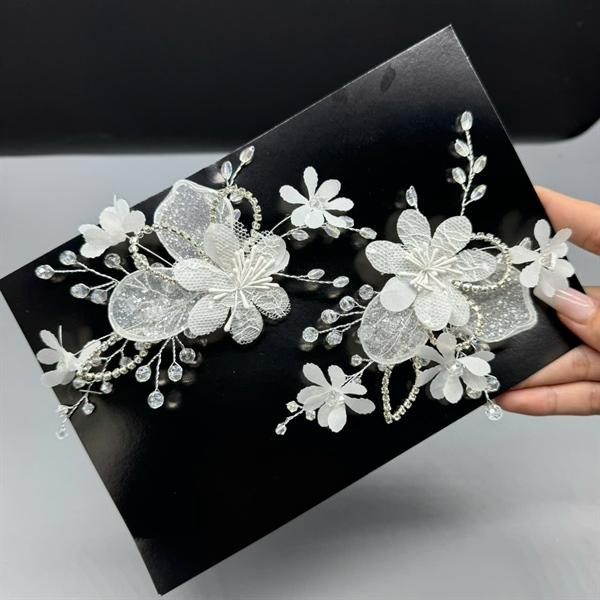 Bộ đôi cài tóc cô dâu lá đính hạt pha lê mẫu 1/2021 giangpkc sp220639 ” Trắng