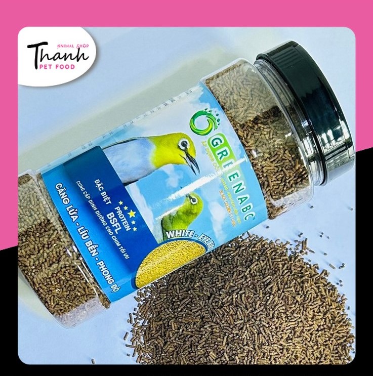 GREENABC là thức ăn cao cấp dành cho CHIM VÀNH KHUYÊN. Đặc biệt sản phẩm GREENABC được sản xuất theo phương pháp Áp dụng công nghệ PROTEIN bền vững từ bột đạm rất giàu PROTEIN – CANXI – LIPID có trong BSFL, đã được Mỹ (AAFCO) và EU chấp nhận đưa vào công thức cho ngành sản xuất thức ăn cho vật nuôi.