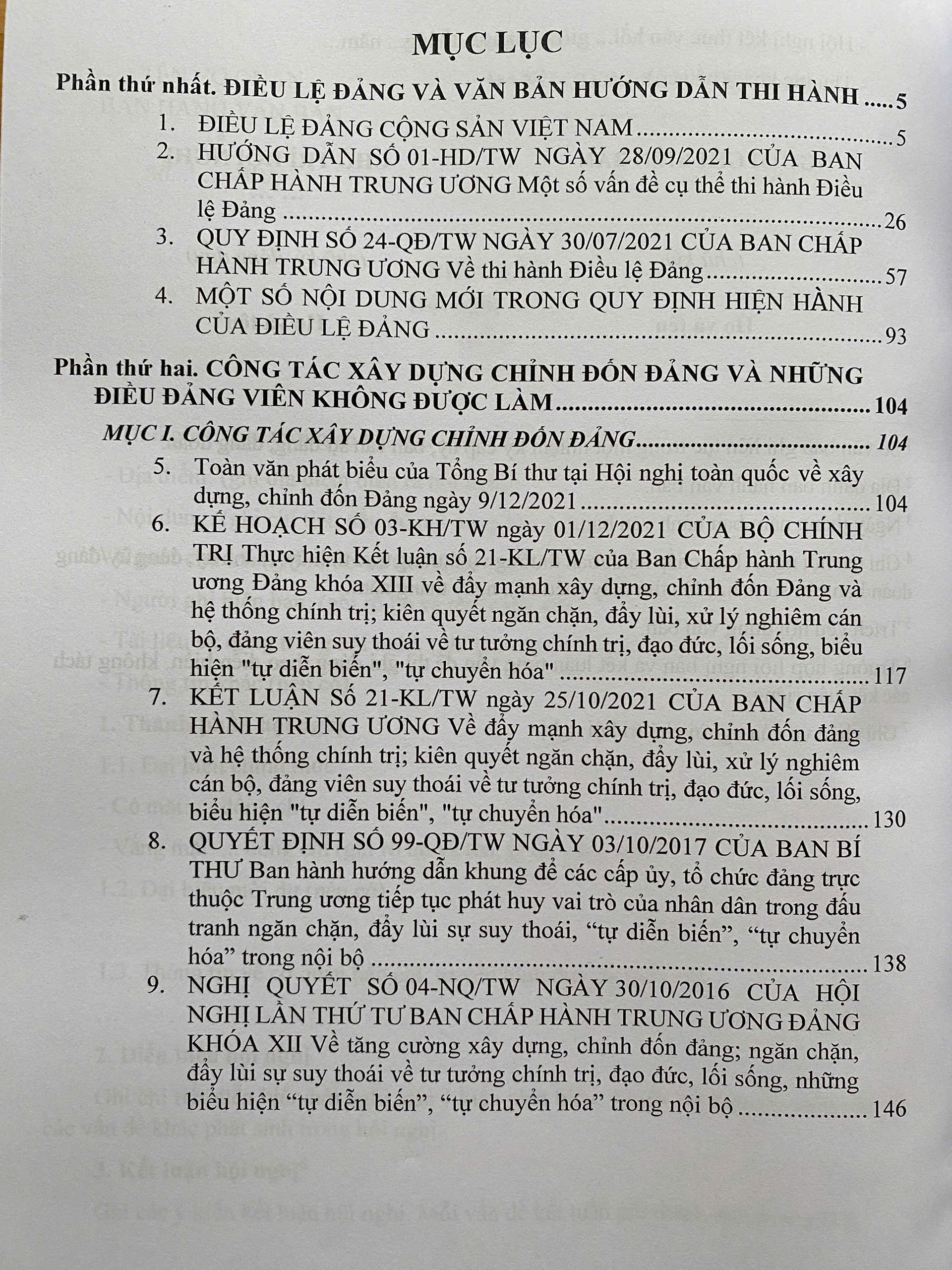 Phần thứ hai. Công tác xây dựng chỉnh đốn đảng và những điều đảng viên không được làm