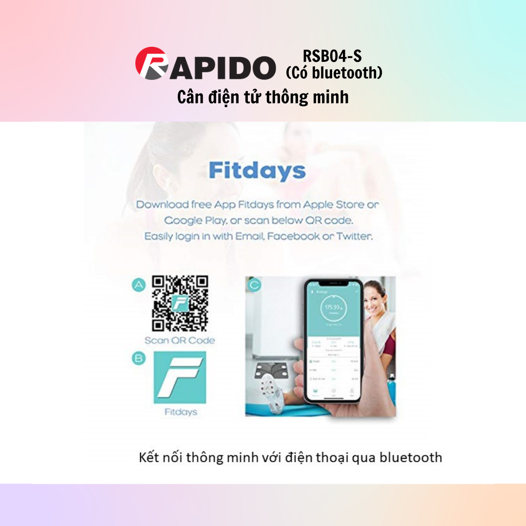 Cân Sức Khỏe Thông Minh Rapido RSB04-S (Có bluetooth) - Hàng Chính Hãng - Bảo Hành 12 Tháng