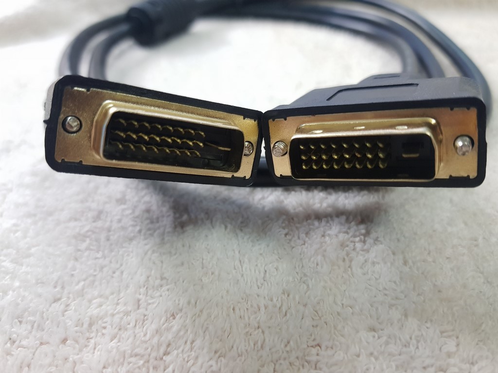- Công dụng: Cáp dùng để cấp tín hiệu DVI của máy tính vào DVI màn LCD, Cáp DVI - chuẩn D được dùng để nối trực tiếp giữa nguồn video (card màn hình) và màn hình LCD . Ưu điểm của ngõ giao tiếp này là thời gian đáp ứng nhanh, chất lượng hình ảnh tốt hơn so với ngõ VGA analog (tương tự). Tất cả các card đồ họa đều xuất ra tín hiệu video số sau đó mới được chuyển đổi thành tương tự xuất qua ngõ VGA. Tín hiệu tương tự di chuyển qua màn hình và được chuyển lại thành tín hiệu số (digital). DVI-D loại bỏ giai đoạn chuyển đổi tín hiệu tương tự do đó chất lượng hình ảnh được cải tiến đáng kể.