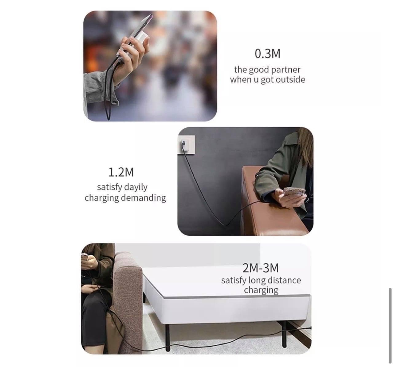 ƯU ĐIỂM SẢN PHẨM - Dây cáp sạc nhanh 3 đầu ip typeC micro Rockspace Hi-Tensile truyền điện, data nhanh hơn nhiều so với cáp mạ thông thường. - Dây cáp sạc nhanh 3 đầu