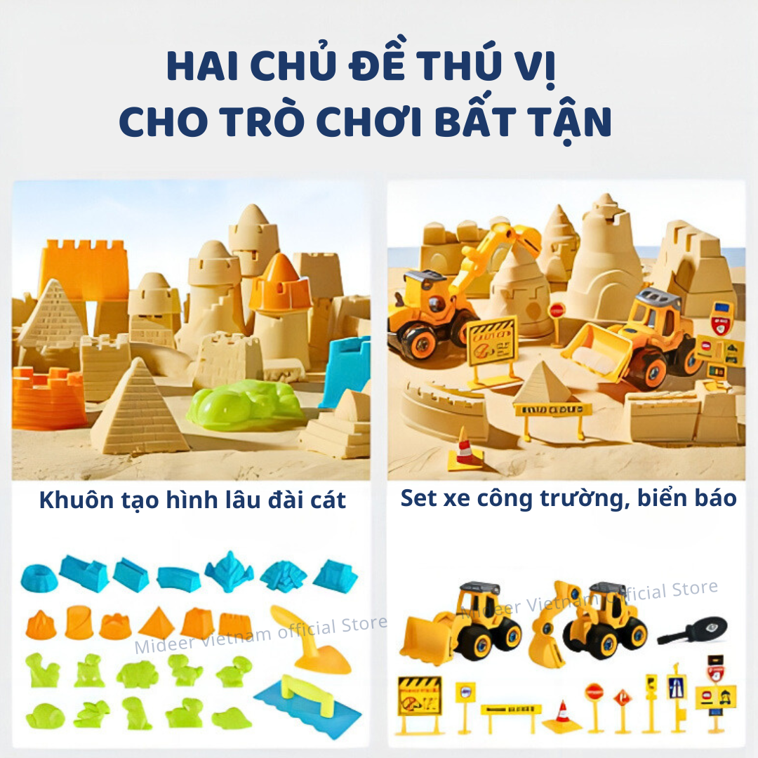 - NHIỀU TRÒ CHƠI THÚ VỊ HƠN: Xây dựng lâu đài, tạo dựng công trường, sử dụng các loại khuôn đa dạng, khám phá thế giới khủng long và nghệ thuật vẽ trên cát. Chọn Cát động lực cho bé Mideer an toàn kèm khuôn dụng cụ, cát trọng lực dẻo tạo hình Magic Sand Play