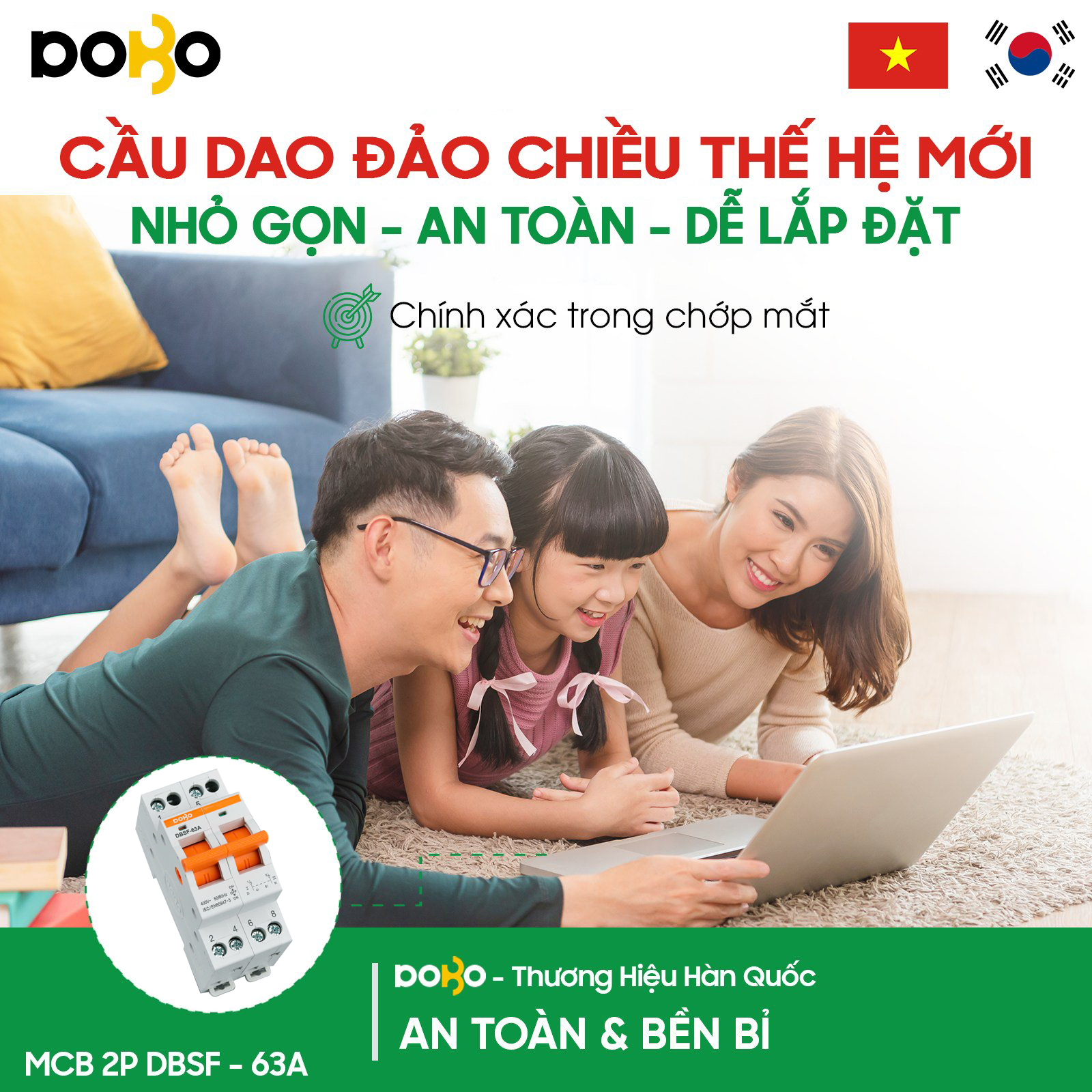 - Tự ngắt khi dòng điện vượt quá tải, quá dòng định mức giúp bảo vệ thiết bị điện. - Tự ngắt khi xảy ra chập điện (Ngắn mạch) bảo vệ an toàn cho thiết